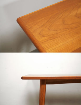 縁や脚部は無垢材を使用しています。長く使い込むほど味わい深くなり、経年変化が楽しめます。