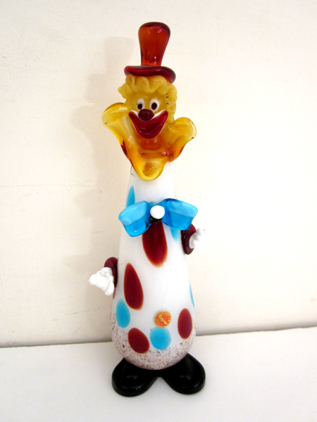 ○イタリア製ムラノガラスの、愛嬌のあるピエロのベネチアンガラスフィギュリンです。