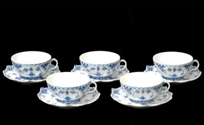 Royal Copenhagen(ロイヤルコペンハーゲン) ブルーフルーテッド フルレース ティーカップ&ソーサー 220cc 5客セットです。