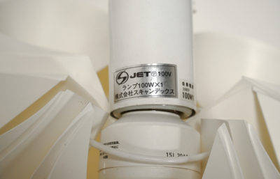シェード中の灯具にラベルがあり、買取査定時にはここをチェックします。ちなみに株式会社スキャンデックスは正規代理店ですので正規品として問題ありません。