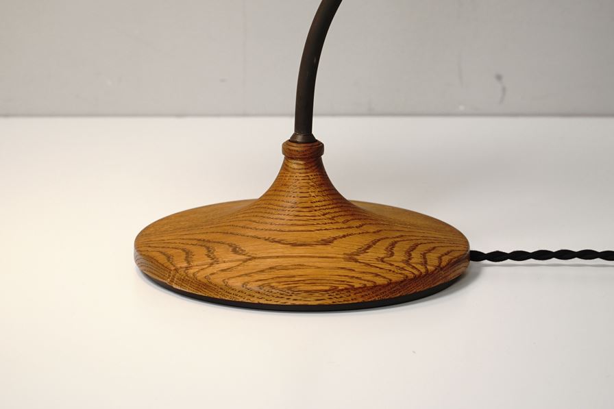 ホワイトオーク材をきれいなラインで削り出したベースがデスクの上に暖かさを与えます。