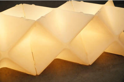 国内ではE&Yが取扱いを行っており、それぞれを組み合わせて好きな形で楽しめるモジュール式の照明です。また照明の上に天板を置いてテーブルとしても使えるように設計されています。