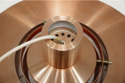 1963年にPreben Fabricius(プレーベン・ファブリシャス)& Jorgen Kastholm(ヨルゲン・カストホルム)による生み出されたこのランプは、夜が長い北欧の人々の光に対する想いが結晶したようなフォルムです。5枚のシェードから洩れる光は目にまぶしさを感じさせず、それぞれのトーンをもち、グラデーション効果をあげています。シェード上方にも光は広がり、天井を高く見せる効果を出します。