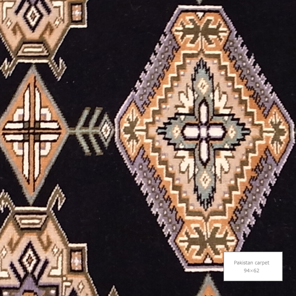 パキスタン絨毯は独特のバホラと呼ばれる幾何学文様と、きめが細かくてしなやかな織り方、独自の仕上げ洗いによる光沢を特徴としています。