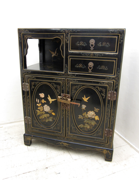 ■鍵付きアンティーク・ティーキャビネット
