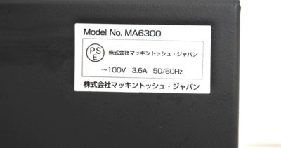 背面部にあるラベルです。マッキントッシュ・ジャパンの表記があります。もちろんPSEマークもあります。