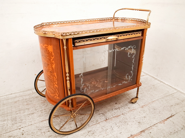 ■イタリア製 象嵌細工 アンティークロココ様式カクテルワゴン
