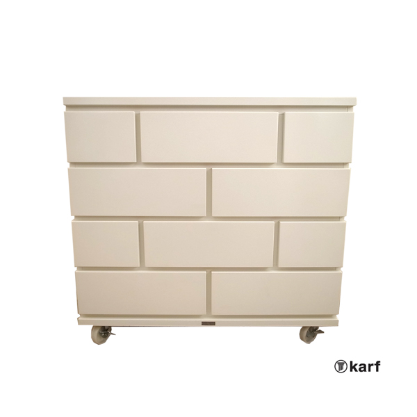交互に配置された引き出しがまるでレンガの壁のようで特徴的なデザインです。