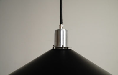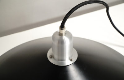 アルミニウムの灯具がブラックのシェードとコントラストが映えて、とても美しい仕上がりです。