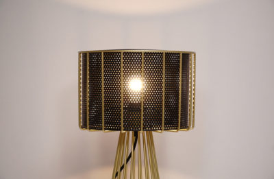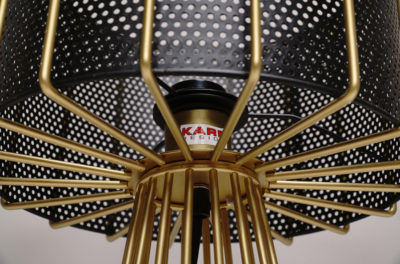 アンティークテイストのゴールドのスチールフレームに、メッシュのスチールシェードを組み合わせたデザイン。