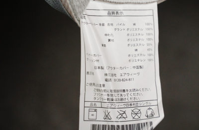 カバーにはこのようなairweave(エアウィーヴ)のタグがあります。