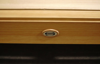 マットレス足元には楕円形のプレートがありました。お問い合わせの際にはこの部分を見ていただけるとモデル名が確認いただけます。