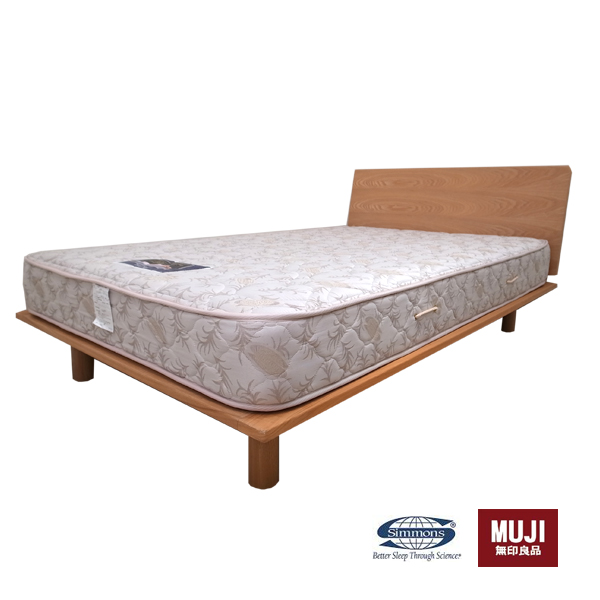 フレームもシンプルさで人気の無印良品の現行品、タモ材セミダルベッドフレーム。