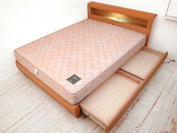 ○大塚家具製造販売のグリフィス タモ材ワイドダブルベッド照明付です。