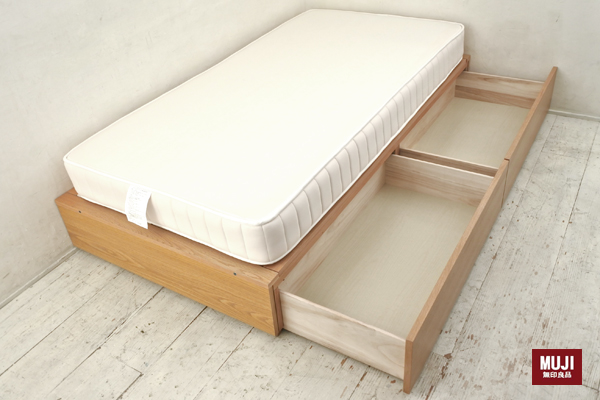 ○人気の無印良品の超高密度マットレス付収納ベッド シングル タモ材です。