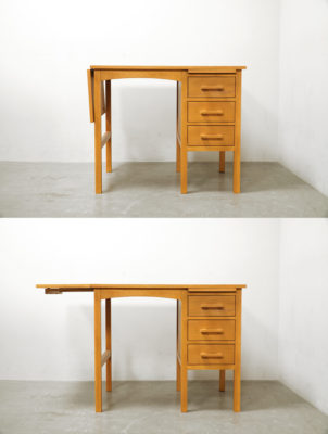 バタフライタイプの天板があり、普段はコンパクトに、使うときは天板を拡張して使用できる便利な机です。