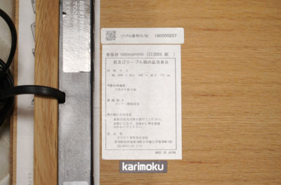 カリモクの正規品にはこのようなラベルがあります。正確なモデル名などがありますので、査定時にチェックいたします。