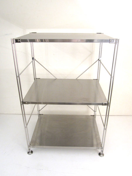 高級感のあるステンレスフレームとステンレス棚板のシェルフです。