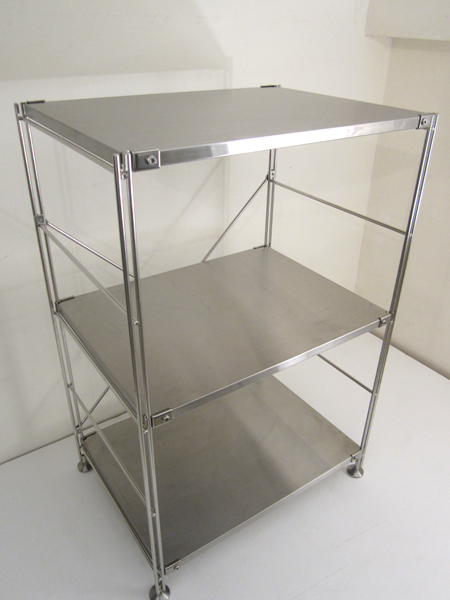 高級感のあるステンレスフレームとステンレス棚板のシェルフです。