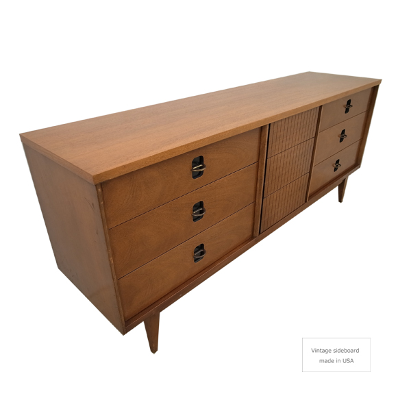 1960年代~70年代にアメリカで製造された物で、多数の引き出しがあるのでワイドチェストとしてお使いいただけます。