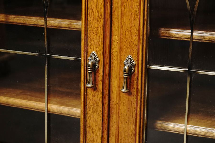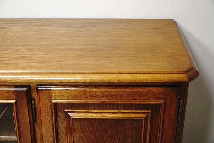 こちらはガラス面に施された金モールや取っ手の味わい深さが趣のあるサイドボード。