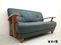 品名:ナラ材無垢 本革張り2人掛けソファ