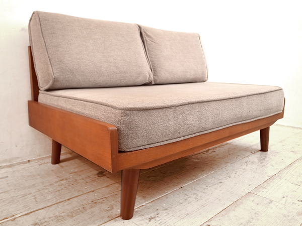 北欧ヴィンテージスタイルでナチュラルな印象のウッドフレームソファ。ほどよい硬さと奥行きのある座面で、ゆったりとした座り心地です。