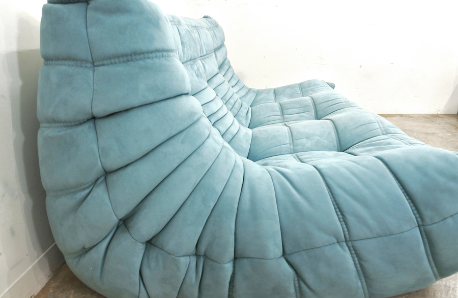 芋虫のような他に類を見ないデザインが印象的なソファ。