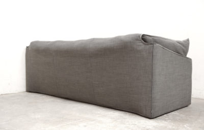まるでオートクチュールの一枚の布をまとったような、ふんわりとした雰囲気で、高めに設定されたシート高と、フェザーの包み込まれるような感触がとても座り心地の良いソファです。