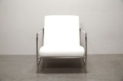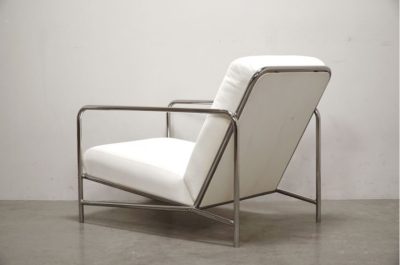 メタリックなスティールパイプのフレームに、ボリュームのあるクッションを組み合わせたソファ。