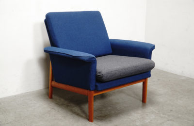 北欧デンマークのFrance&Son(フランス&サン)社製で、アームのカーブや脚部の形状など、随所にFinn Juhl(フィン・ユール)らしさが感じられる代表作の一つです。