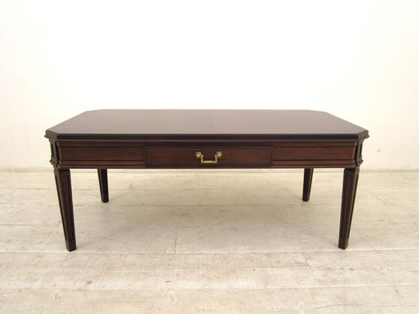 天板にはソロモンマホガニーの綺麗な木目が出ており、クラシックとコンテンポラリーの融合でもある華やかで高級感のあるテーブルです。