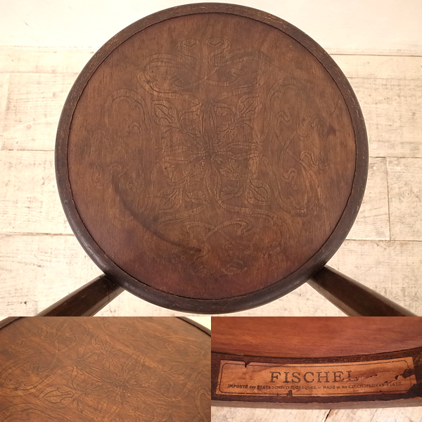 ○チェコスロバキア製フィスケル社ベントウッドチェアです。1920年代の品物で優雅なエンボスシートや年月を経た色合いがとても素敵なチェアです。