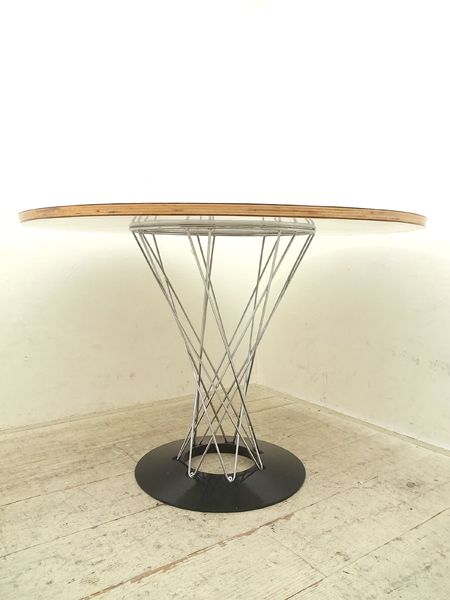 ○イサム・ノグチが1954年に発表したサイクロンテーブルです。螺旋が絡み合う美しい脚部と天板のコントラストがモダンデザインの名作と呼ぶにふさわしいテーブルです。古い品物でステッカーなどは無い状態ですが、こちらはアメリカでモダニカ社より購入されたとうかがっております。