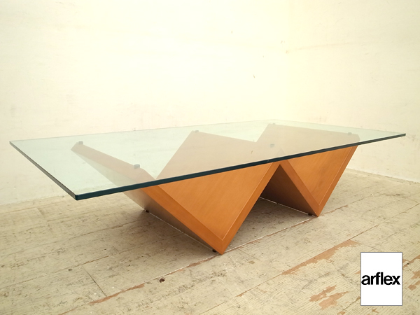 ○安定感のあるW字型の脚部とガラスの透明感を調和させた、躍動感のあるテーブル。