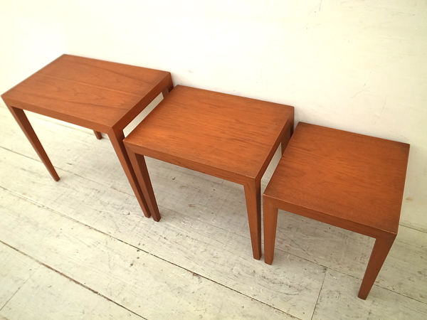 ○1960年代北欧デンマーク製のチーク材ヴィンテージネストテーブルです。