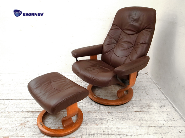 ファーストクラスのすわり心地を再現した、ノルウェー「エコーネス」社のストレスチェア、オットマンセットです。
