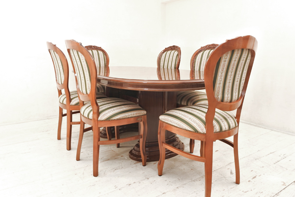 ○イタリア製 サルタレッリ「フローレンス」ダイニングテーブル + イタリア製ロココ様式猫脚ダイニングチェア6脚セットです。