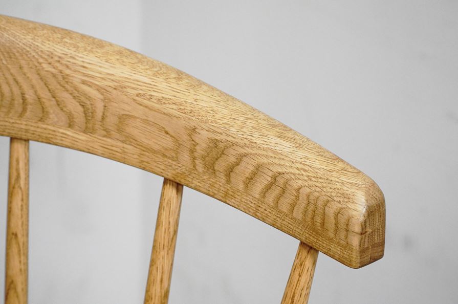縦格子状の背もたれに体を預けてゆったりと座ることができ、