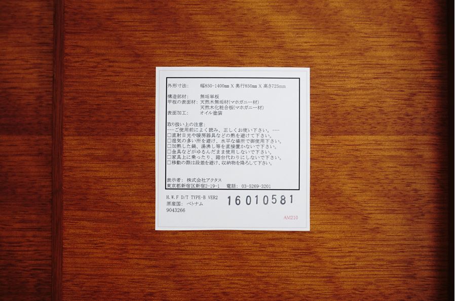 ACTUS(アクタス) H.W.F出張買取-アドア東京- (エイチダブリューエフ)マホガニー ダイニングテーブル エクステンション