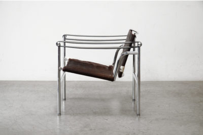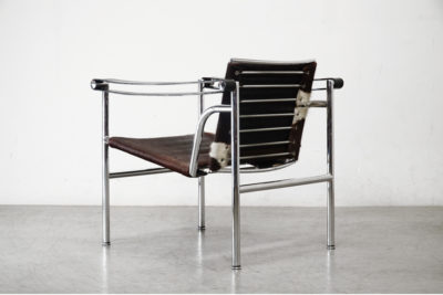 ル・コルビュジエと、彼の従兄弟のピエール・ジャンヌレ、シャルロット・ペリアンとの共同デザイン。スリングチェア、バスキュランチェアとも呼ばれます。20世紀に作られた椅子の中でマスターピースのひとつに数えられる名品。「住宅は住むための機械である」というル・コルビュジエの言葉は、装飾を排し機能性を追及したこの椅子に当てはまります。背もたれが姿勢に応じて動くのが特徴で、アームはフレームに厚革を掛けただけのシンプルな構造です。