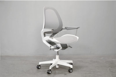 シームレスな動きが「座っていること」を再定義するオフィスチェア。吊り下げ式の座面が、今までにないフィット感と継続的な動きを可能にしました。ダイナミックなカーブを描くバックレストと、フレームから独立したシートによる前衛的かつ未来的な外観デザインは、オフィス空間だけでなく、クリニックやサロンのカウンターといった洗練された空間にも違和感なく馴染みます。 また背もたれのカーブが体に添い、4本のロッドで吊り下げられた独自形状のサスペンデット・シートがデスクワーク時の動作や姿勢に合わせて動き、自然な姿勢を維持します。長時間座っているとよくありがちな前のめりや前すべりを防ぎ、意識しなくても自然な姿勢を維持することで、体の負担を低減します。