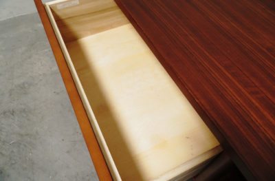 天板、引き出し前板には希少材「ムテニエ 」を使用しています。